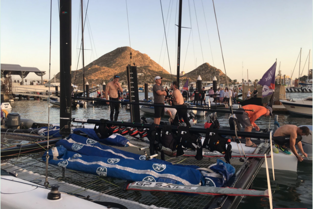 A late afternoon sun illuminates the other boats careening around the markers: Oman, Switzerland, New Zealand—eight vessels in all. Beyond, natural rock formations jut out of the blue like fists. I’m in Los Cabos, Mexico, where the Pacific Ocean meets the Sea of Cortez, smack-dab in the middle of the second to last race of the year-long Extreme Sailing Series. A very prestigious event, I’m told, bringing together some of the very best sailors in the world to compete in a sport I didn’t know existed until a few weeks ago. It’s called Extreme because of how the boats lift out of the water, traveling up to 48 mph using nothing but the wind.